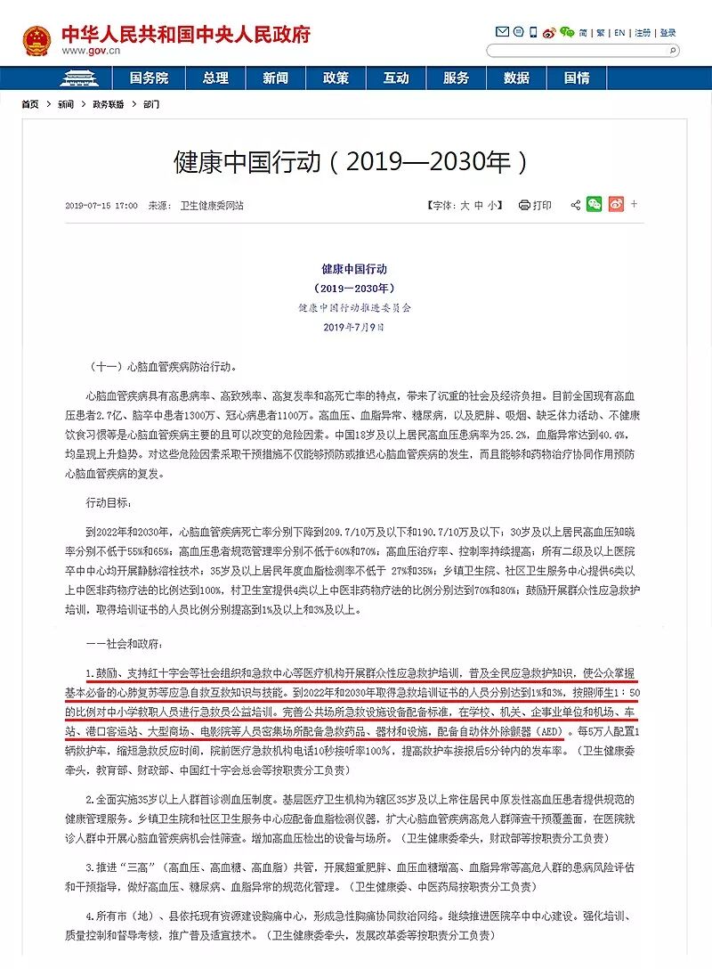 《健康中国行动(2019—2030年)》中,已明确提出了未来急救培训持证人员比例要求,并明确指出要完善公共场所急救器材(尤其是AED)的配备。希望在政策的指引下,以此次首届中国AED发展高端论坛为契机,快速推动AED的普及和行业的发展!