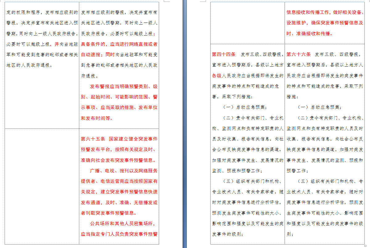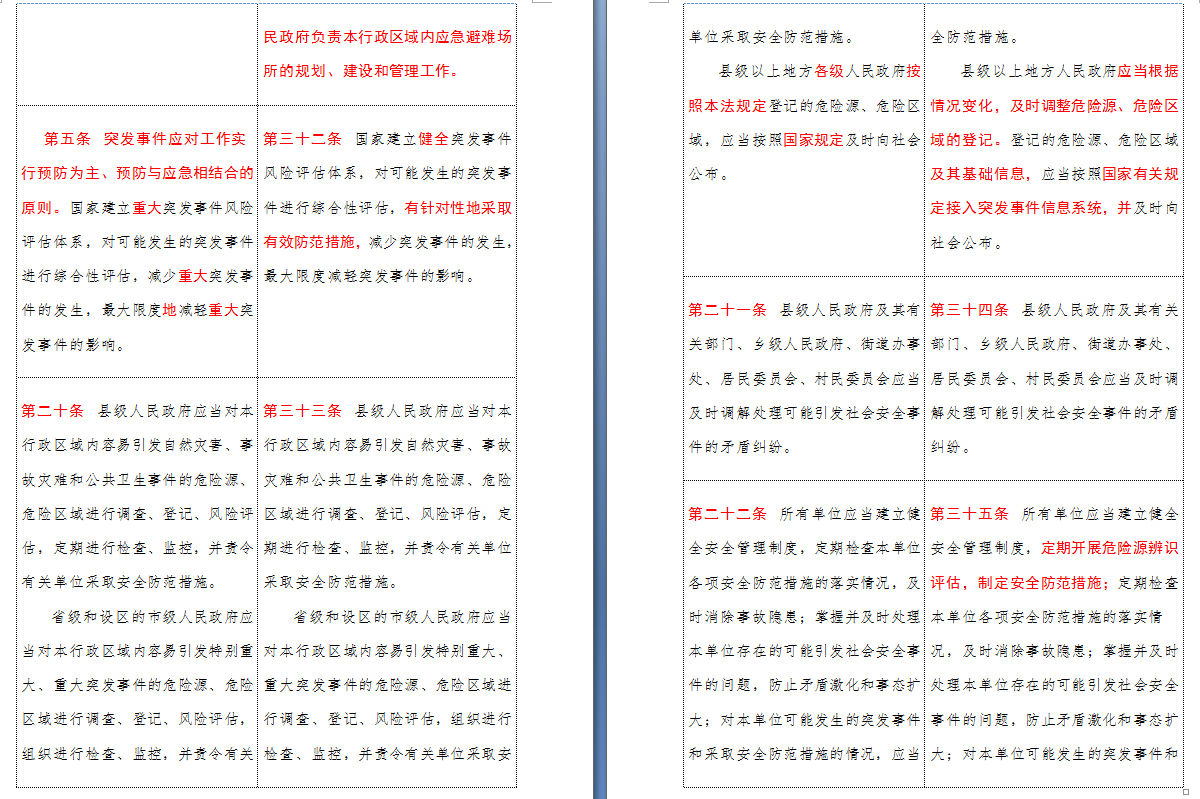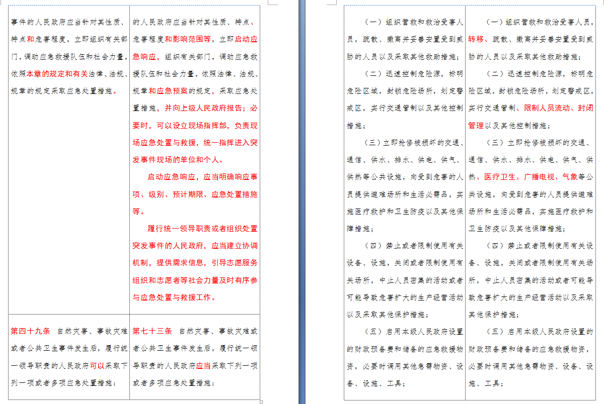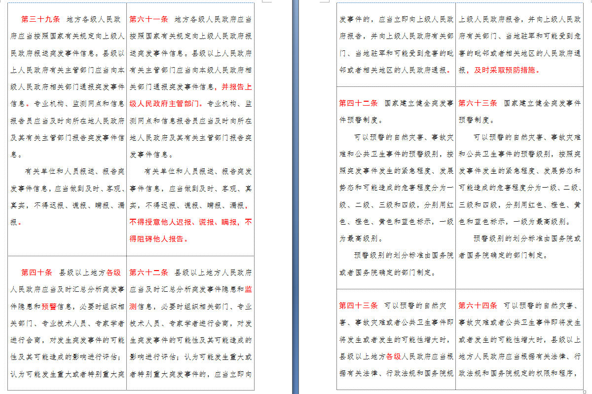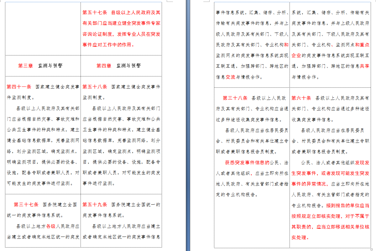以下是 中华人民共和国突发事件应对法(2007-2024对照表)注:条文中红色字体为增删改内容: