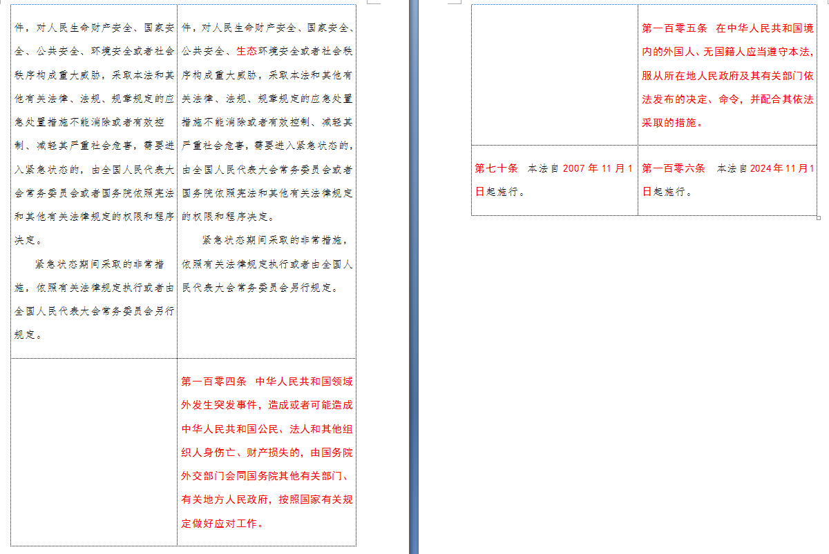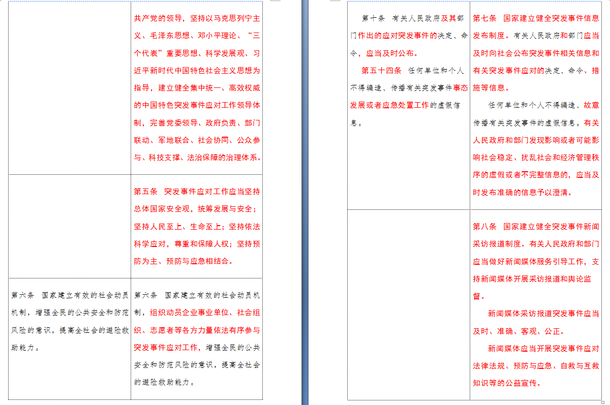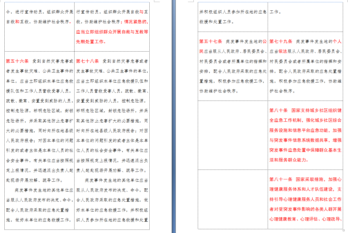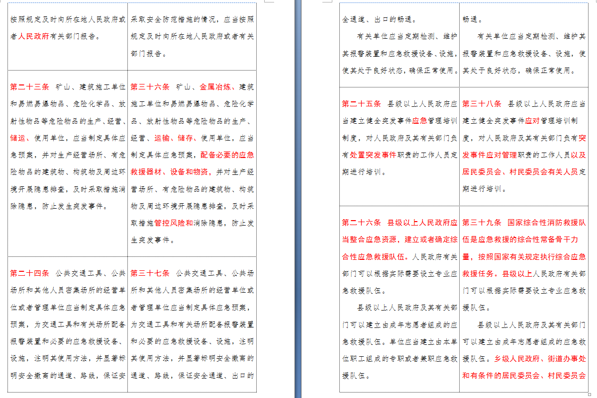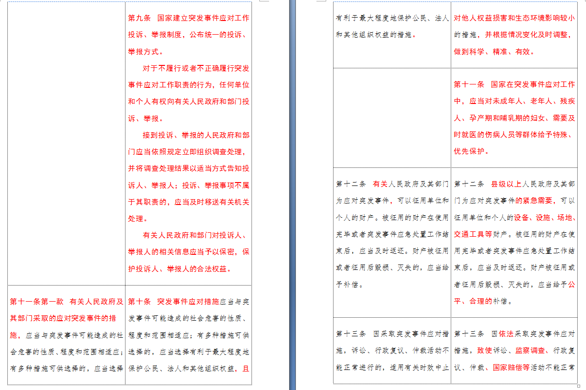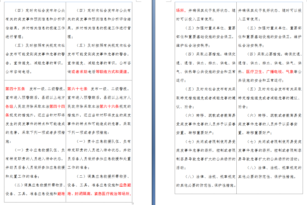 以下是 中华人民共和国突发事件应对法(2007-2024对照表)注:条文中红色字体为增删改内容: