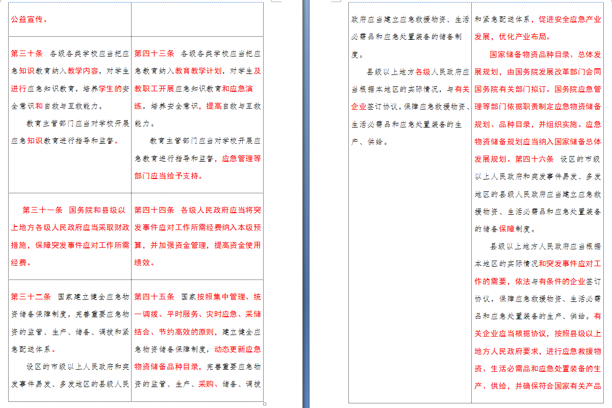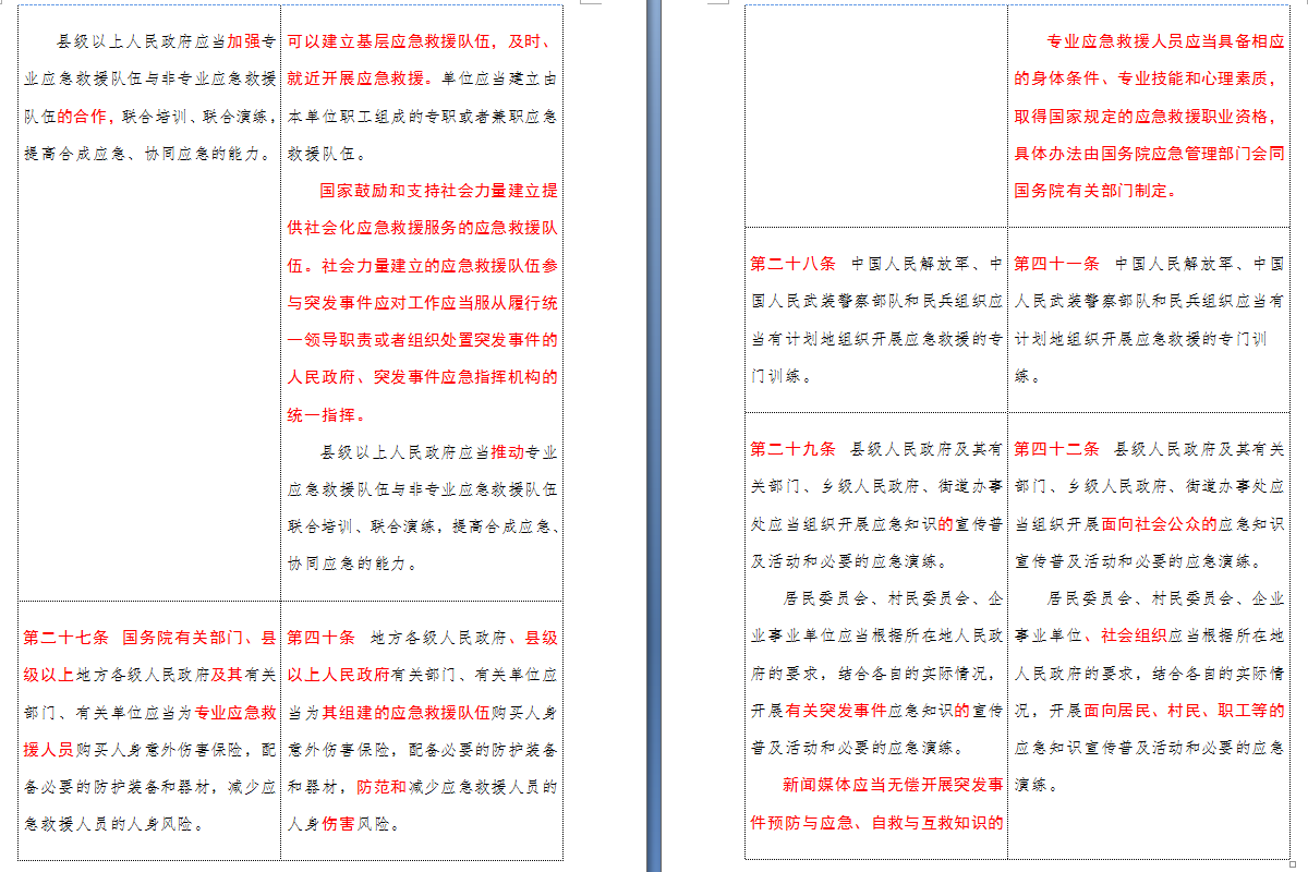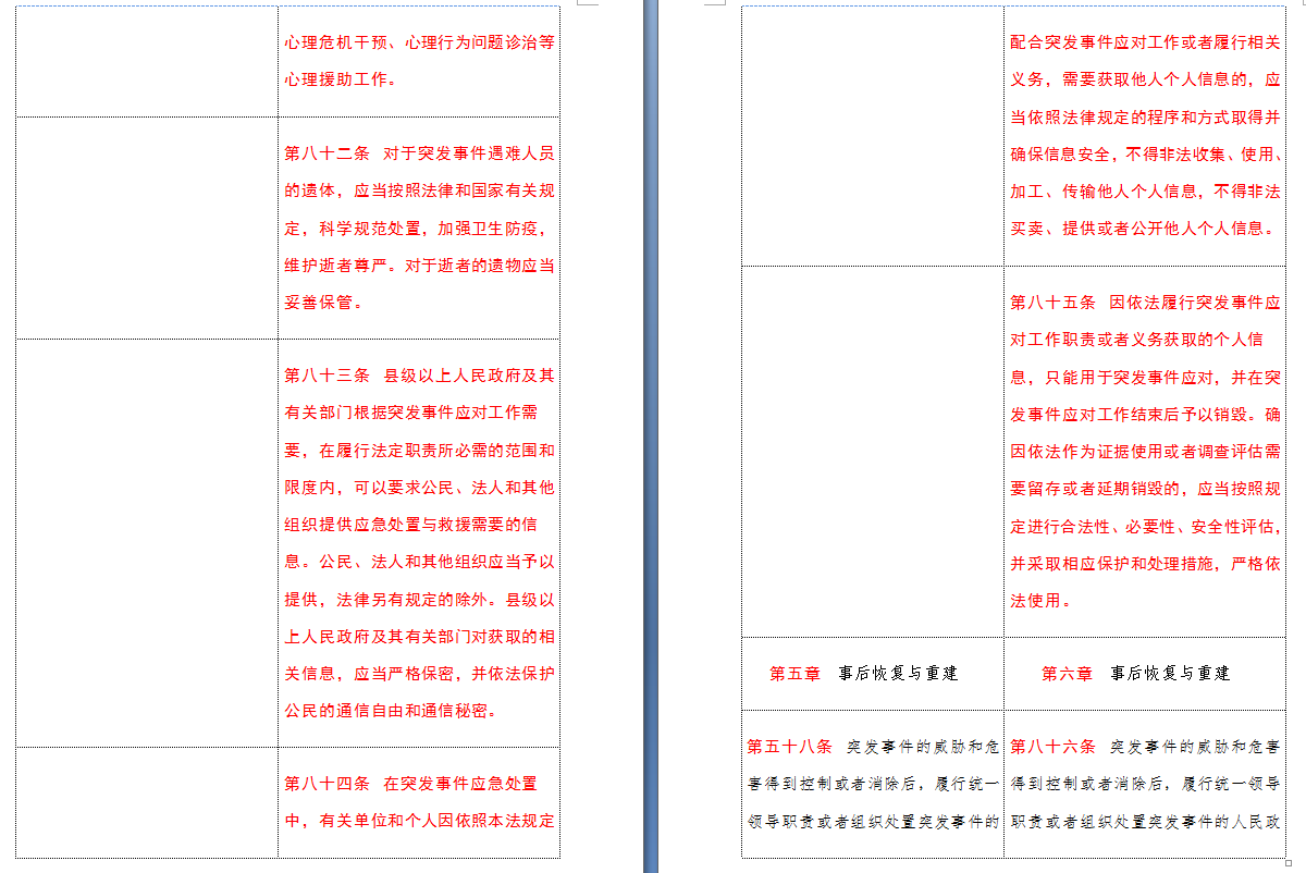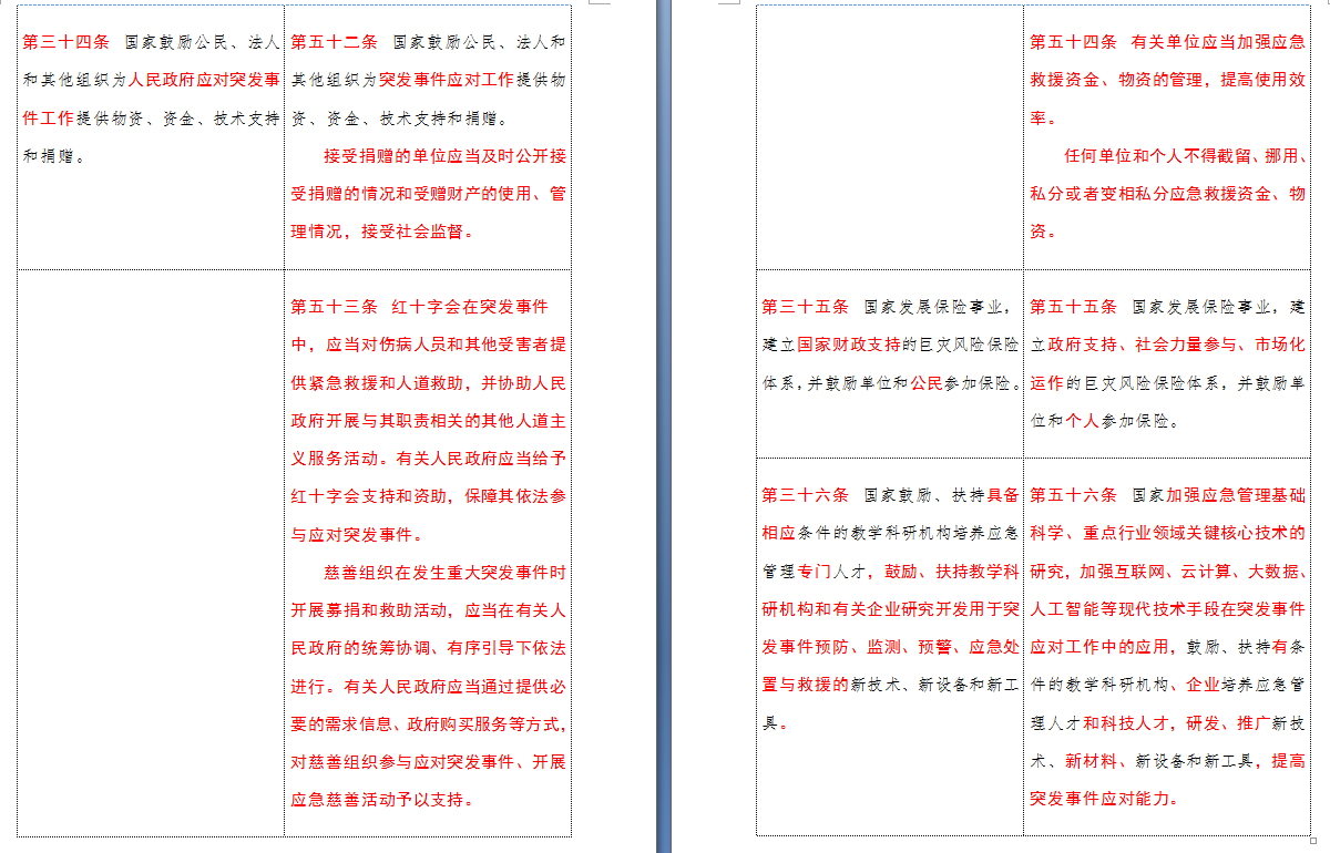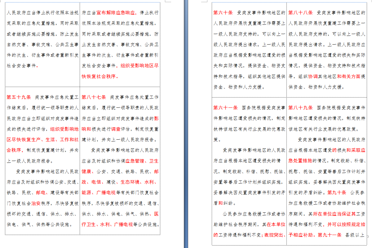 以下是 中华人民共和国突发事件应对法(2007-2024对照表)注:条文中红色字体为增删改内容:
