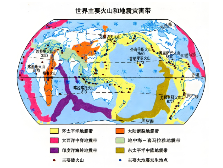 地震带是地震集中分布的地带,在地震带内地震密集,在地震带外,地震分布零散。世界上主要有三处地震带—环太平洋火山地震带、欧亚地震带、大洋海岭地震带。