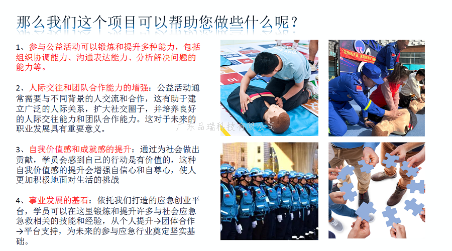 ​2025年,广东品瑞科技有限公司(应急科普人)方舟计划,千人授证,急救公益活动进行中。欢迎加入我们的团体,免费提升您的急救技能,扶持学习授证,共同打造急救生态圈,推动急救事业发展!