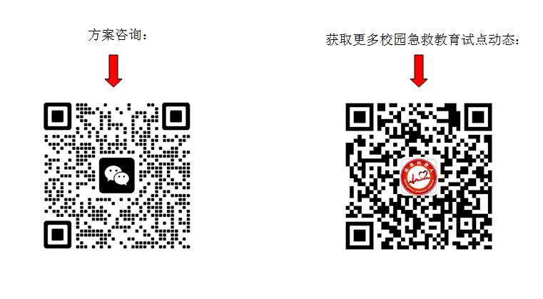 我们为全国学校提供急救教育试点建设方案,校园急救装备、急救教学、一站式方案定制,结合法规推进校园急救教育试点工作。如有疑问,欢迎扫码咨询和关注我们。
