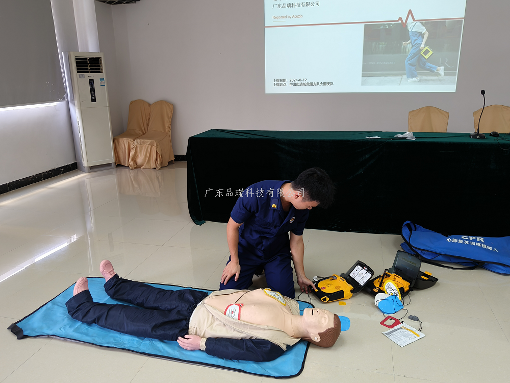 8月12日,品瑞科技工作人员来到中山市消防队对之前配置过的AED进行排查,并对即将到期的电池和电极片进行更换。
