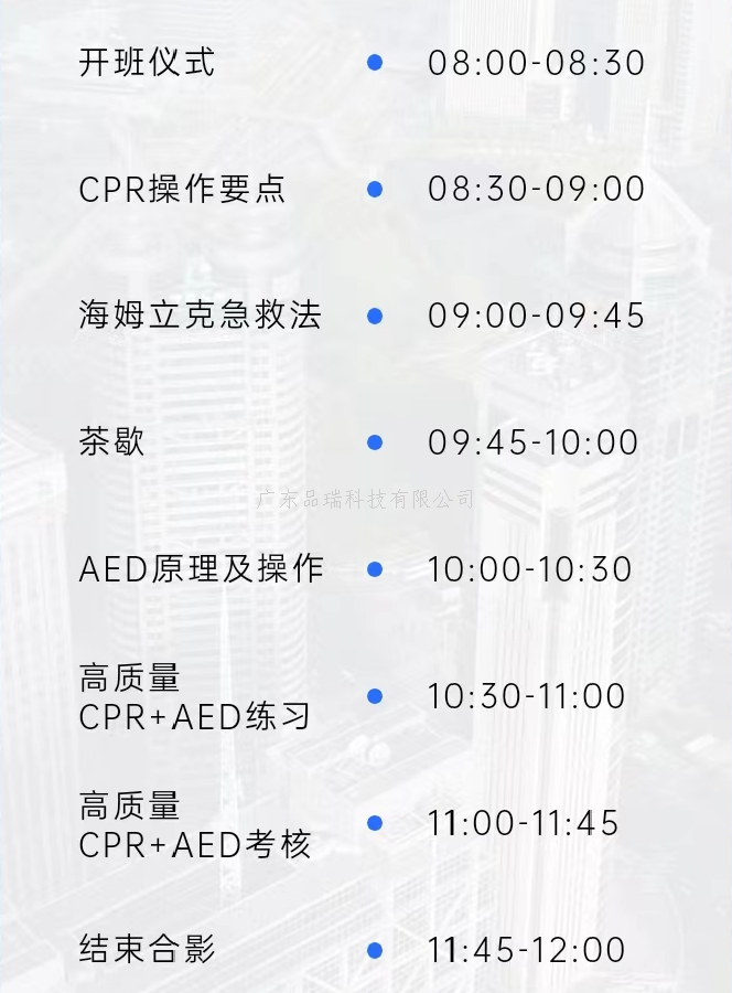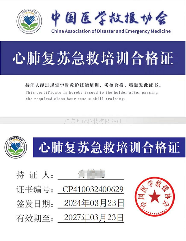 【培训内容】:中国医学救援协会现场心肺复苏急救培训为线下理论学习+实操演练的方式进行。线下培训4个学时,主要是技能练习及考核,考核通过后颁发中国医学救援协会现场心肺复苏及除颤器使用急救员证书。