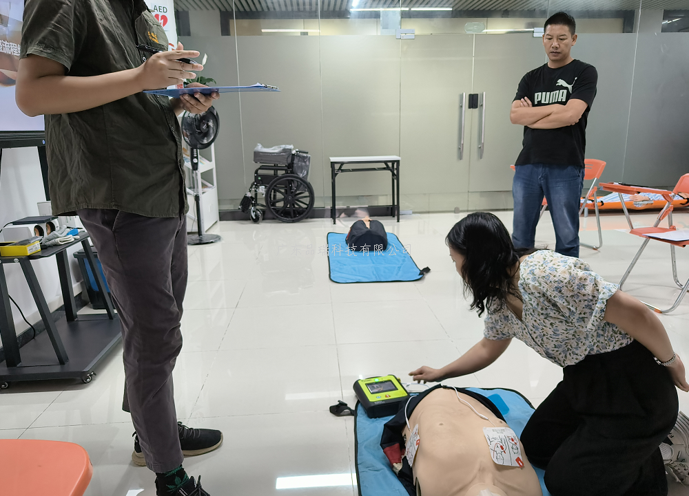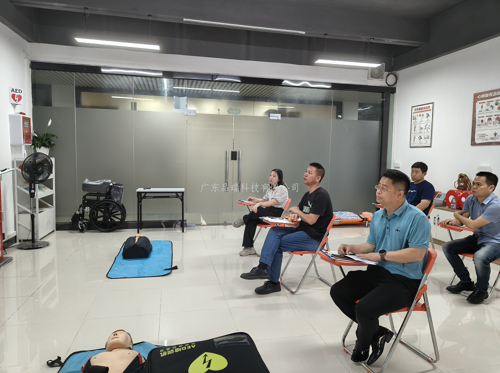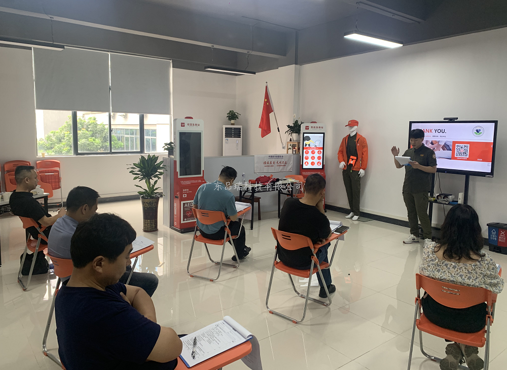 由品瑞急救辅导老师为学员们授课,学习培训主要内容是:心肺复苏和AED除颤仪的使用;同时还学习了止血包扎、海姆立克、人工呼吸等应急救护知识。