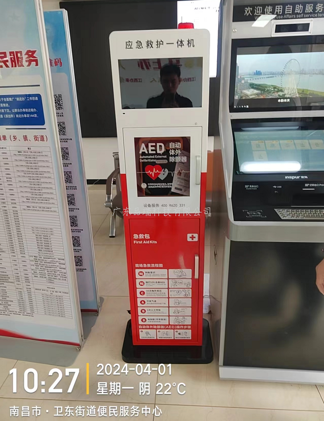4月初,品瑞科技为南昌市提供应急救护一体机20台,继桂林漓江后又一次助力!该批次应急救护一体机投放于公共场所多个场合。为应急急救建立保护屏障,提高人们对于防范风险的意识。