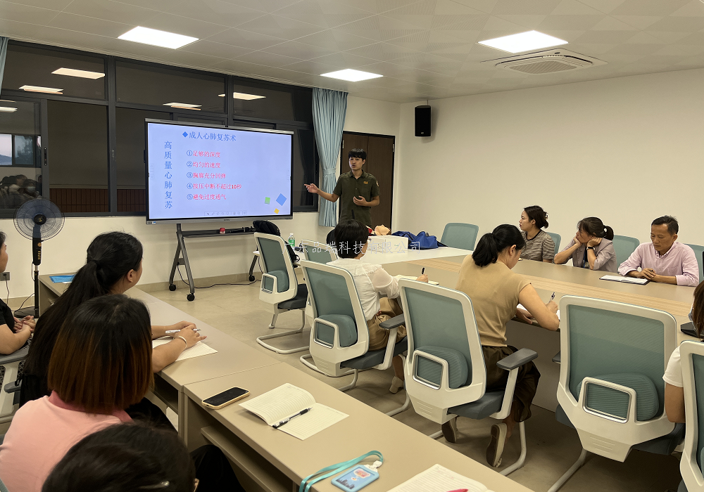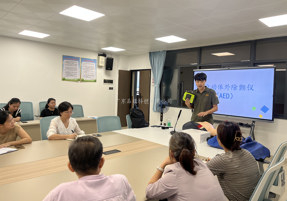 2023年11月6日,广州新泉小学进行了一场AED急救培训。培训的主要内容是:了解心脏骤停突发带来的危害和预防措施;学习心肺复苏并进行练习实操;其中最主要是学习如何使用AED(自动体外除颤器)对患者进行紧急救治,及一些关于AED的后续管理维护。