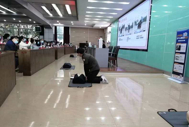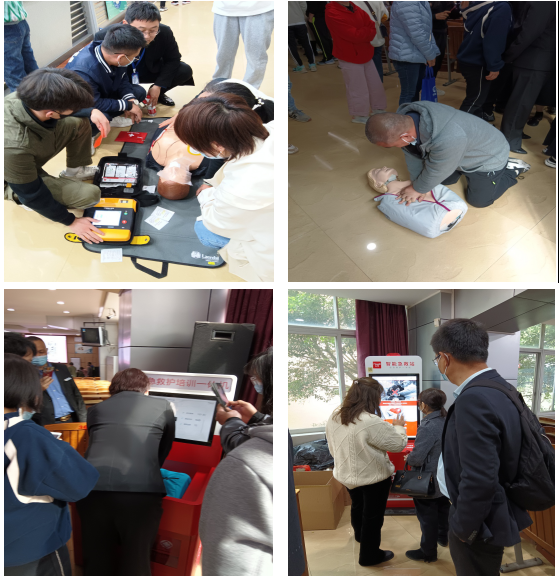 协助单位提供了校园急救包(箱)、CPR模拟人、AED训练机、AED真机、校园急救站,应急救护培训一体机等急救设备,供现场分组实训,所有参与者都积极认真,模拟急救现场,交流体会,近距离感受紧急情况下对患者实施急救的正确方法与启动生命链急救的流程。尤其是AED自动体外除颤器的应用与操作更为认真,真正意识到“救命神器”的作用与配置意义。