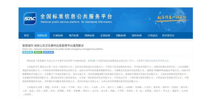 近日,《智慧城市 突发公共卫生事件应急管理平台通用要求》(GB/T 43581-2023)(以下简称《应急管理平台通用要求》)经市场监管总局(标准委)批准发布,将于2024年7月1日起正式实施。