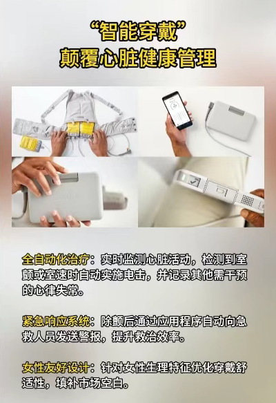 近年来,随着可穿戴技术的快速发展,穿戴式AED(Wearable AED)应运而生,它通过轻量化、智能化设计,让除颤设备真正实现“贴身守护”,有望彻底改变心脏急救的行业格局。