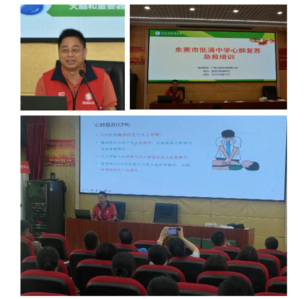 为进一步提升校园应急救护能力,保障师生生命安全,2025年4月23日上午,低涌中学组织开展了"守护生命 '救'在身边"心肺复苏急救专题培训。本次培训特邀广东品瑞科技有限公司总经理潘勇智担任主讲,我校班主任、体育教师及宿舍管理人员等关键岗位教职工全员参与。