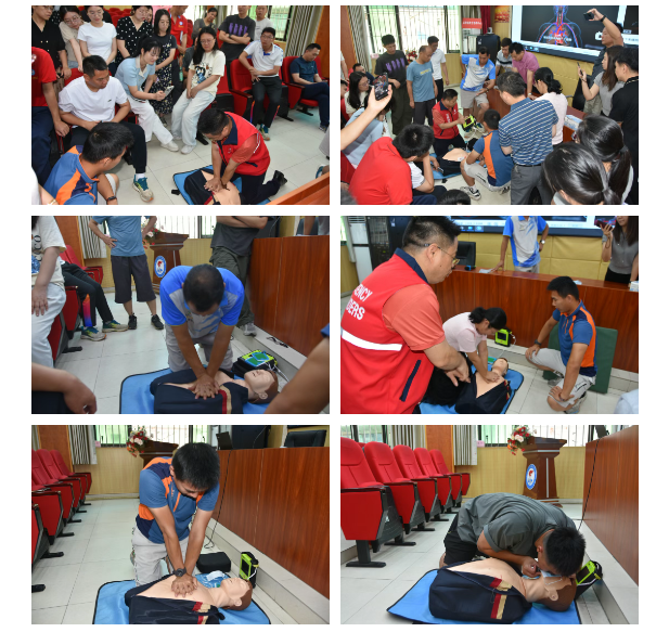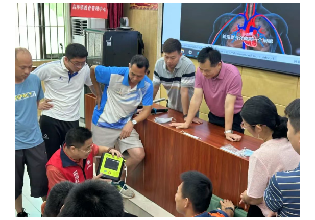 在实操环节,参训教职工分组进行模拟演练。潘经理现场指导纠正动作细节,确保每位教师掌握心肺复苏"判断意识-呼救求助-胸外按压-开放气道-人工呼吸"的完整流程。AED设备实操,让参训人员能在紧急情况下迅速、有效地进行急救操作。参训教师纷纷表示,通过"理论+实操"的培训模式,切实提升了应急救护的实战能力。