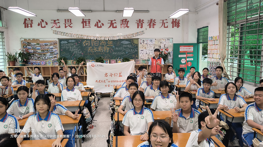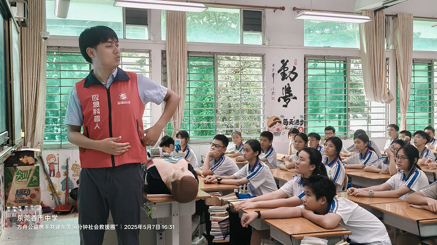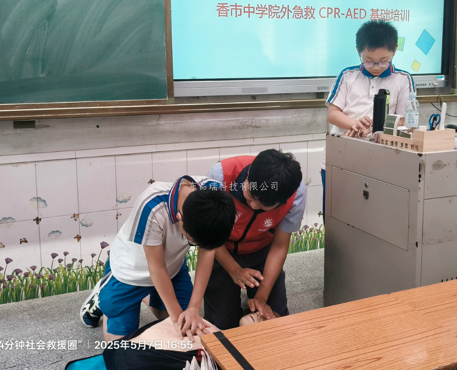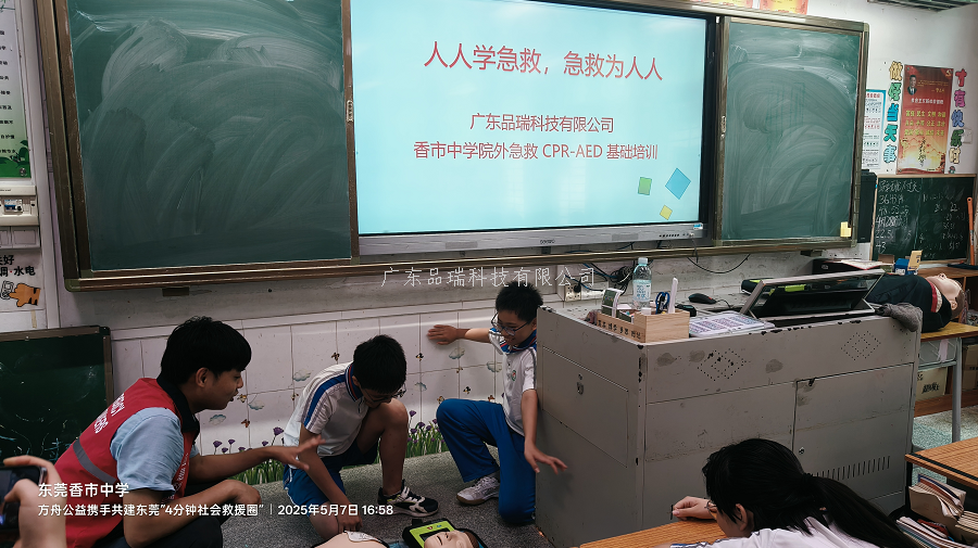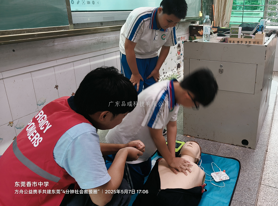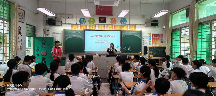 2025年5月7日,受家长和学校老师的邀请,广东品瑞科技有限公司(简称:“品瑞急救”)专业团队来到寮步镇香市中学,为老师和学生们准备了一堂应急救护知识课。