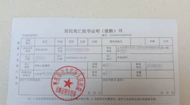 梁军的死亡医学证明(受访者供图)