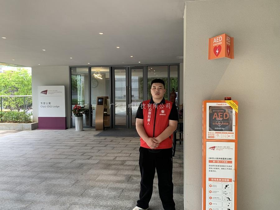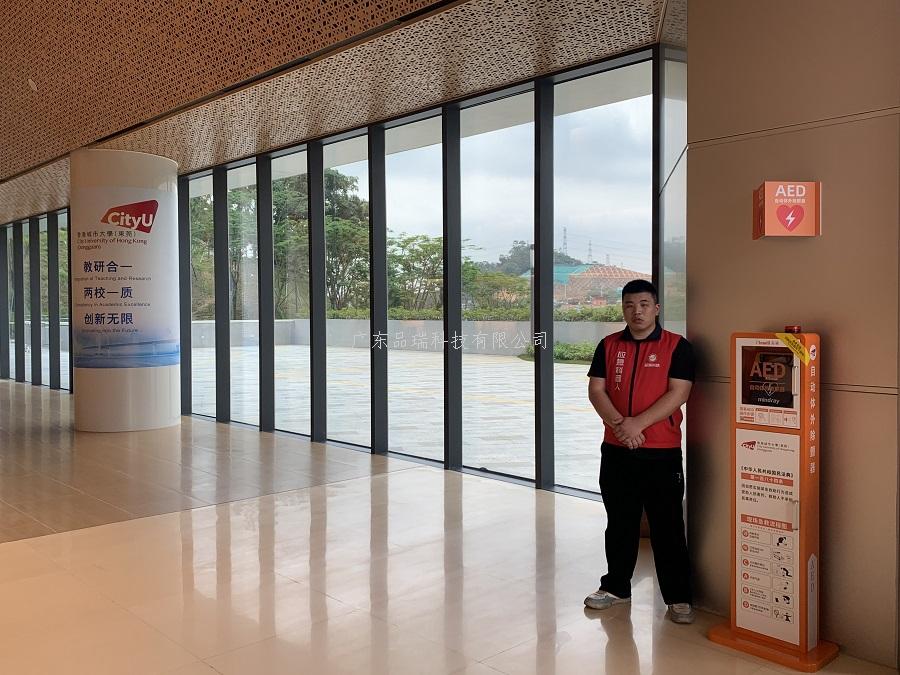 本批次急救设备由香港城市大学(东莞)发起招标,广东品瑞科技有限公司(品瑞急救)中标该项目。当天早上,品瑞急救工作人员在学校现场协助进行校园急救站投放。并把每一台急救站投放于人流密集的位置,确保万一在意外发生的时候能够加快响应。