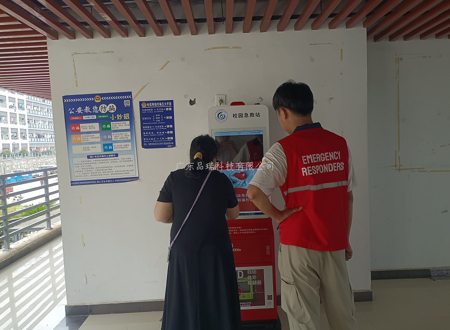 2025年6月5日,贵州健康职业学院完成11台校园急救站的部署,所有设备均安装于食堂、教学楼、体育场等人员密集区域。此次项目由广东品瑞科技有限公司(品瑞急救)中标实施,专业技术团队不仅完成设备安装调试,还为学校相关人员开展了系统的急救技能培训。