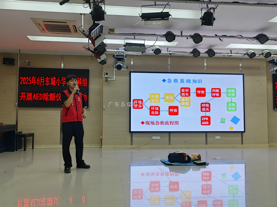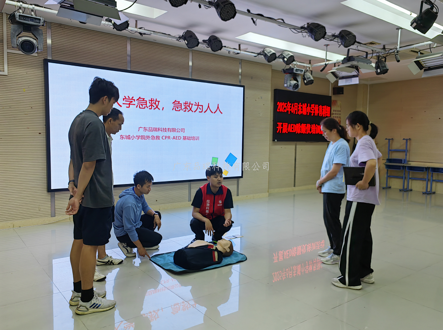 这场校园急救技能培训,举办时间:2025年6月10日;举办地点:东莞东城小学;参训学员:学校体育科组。这是一场具有针对性很强的急救学习培训活动。 这段时间,关于校园体育课间出现的意外伤害偶有发生。尤其是突发心脏骤停事件,引发严重后果,还可能会让人失去宝贵的生命。因此,学校除了举办常规急救知识学习,组织体育老师举行二次学习和技能训练是一件既重要又是针对性很强的事情。 体育老师通过急救知识学习和技能训练,加强应急救护能力!关键时刻成为第一响应人。快速有效地对现场人员进行紧急救护!这至关重要!