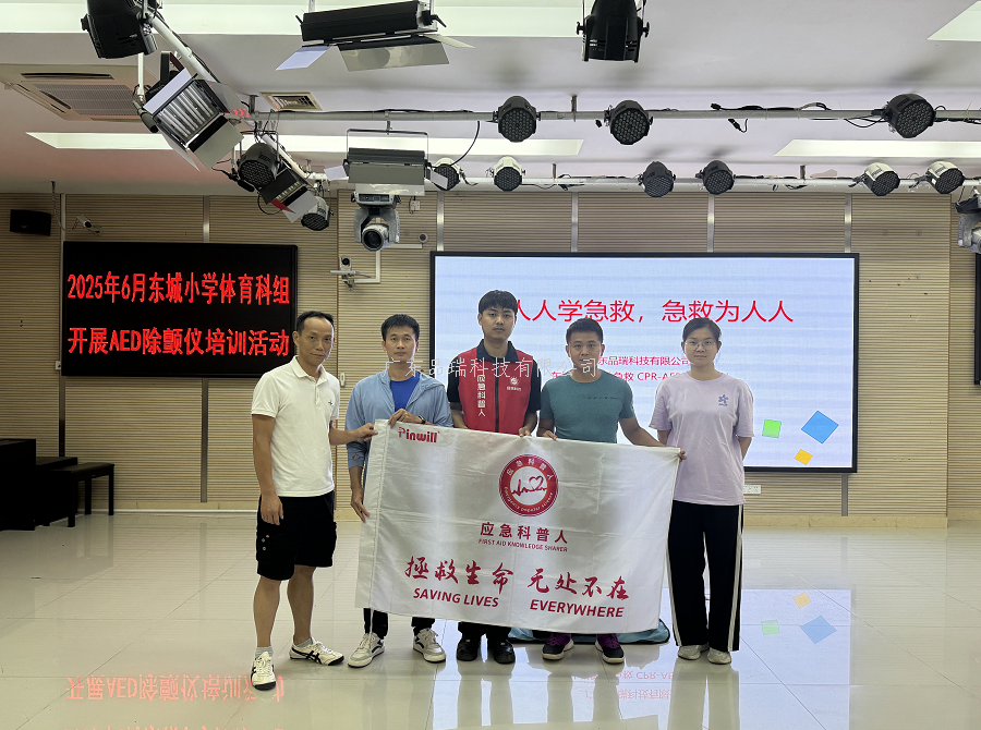 近日,广东品瑞科技有限公司(品瑞急救)协助东莞东城小学进行AED急救设施布防工作,同时对学校体育科组老师们进行急救知识学习培训。