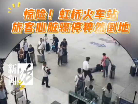 发生在上海火车站,旅客突发心脏骤停倒地。好心人快速支援急救,有惊无险,成功挽救生命。患者醒来后继续到医院进一步进行治疗。