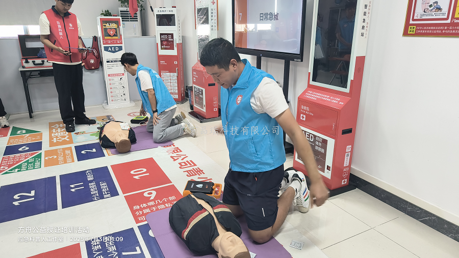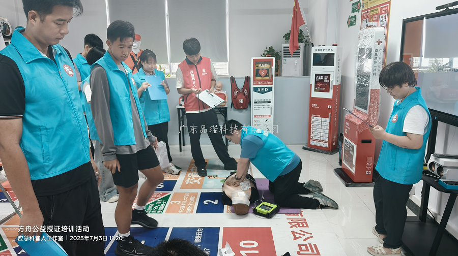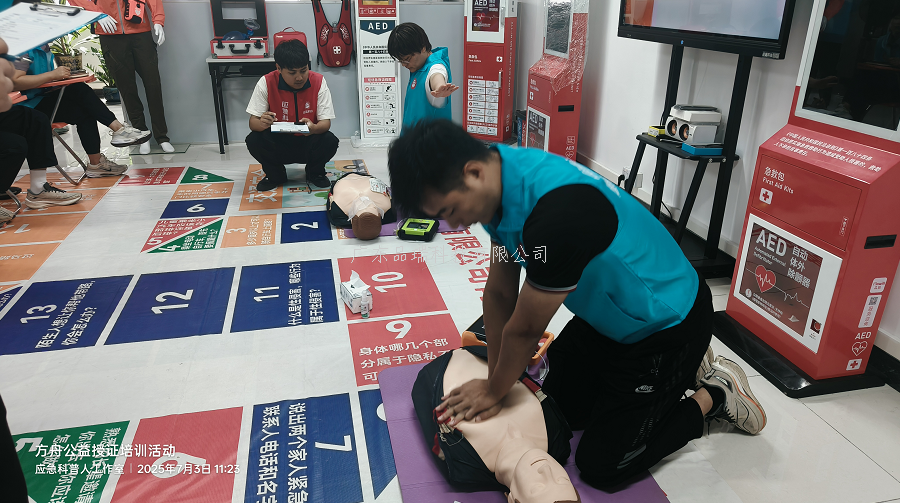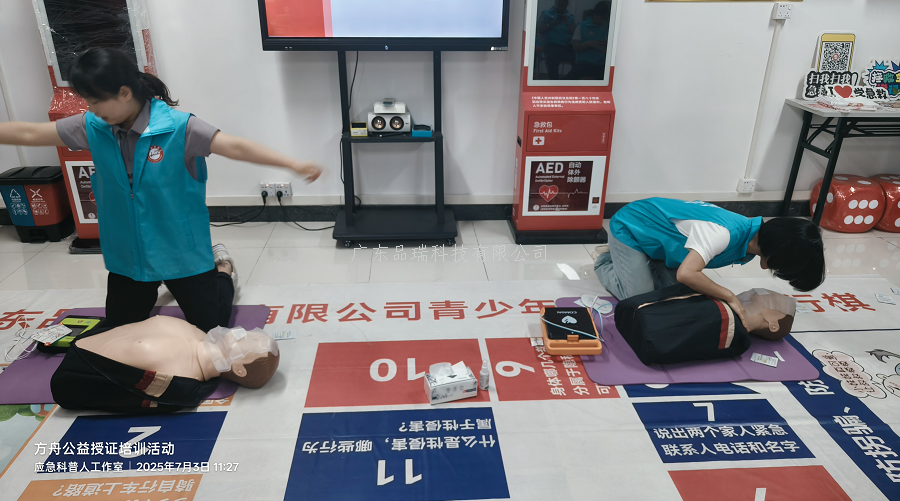 现场学习:急救应对流程、心肺复苏、AED使用,海姆立克等知识技能。