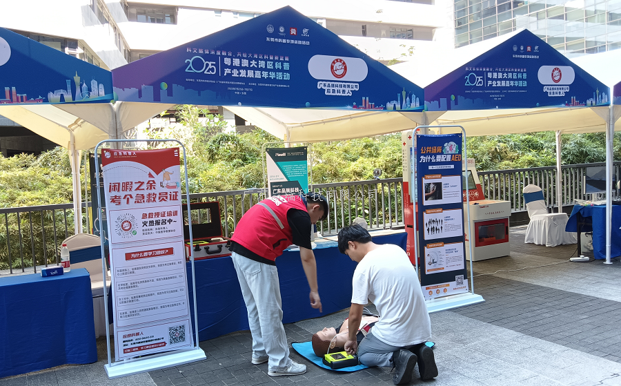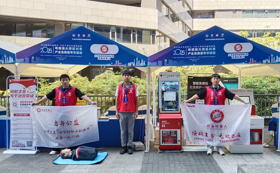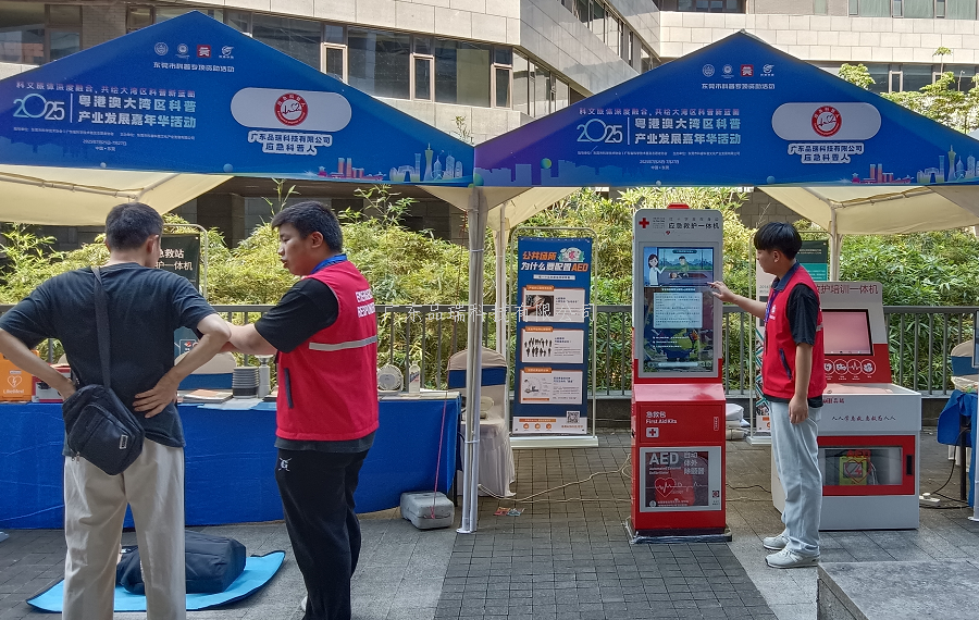 本次活动由东莞市科普专项资助,此次嘉年华吸引了众多关注。广东品瑞科技有限公司带来了应急救护一体机、智能急救站、急救包、AED 除颤器等一系列应急救护相关产品,同时为现场大众展示急救技能演练!直观展示了品瑞科技多年来在应急救护领域的积累成果。