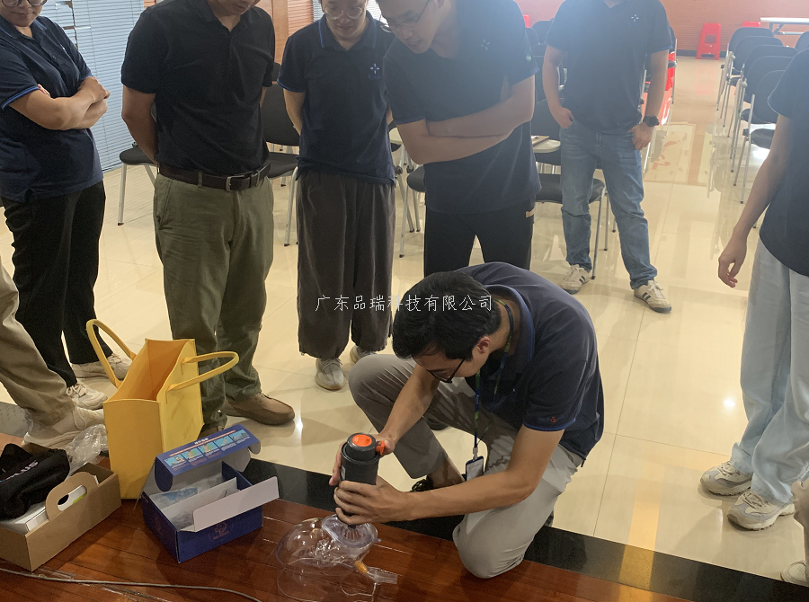 培训中,广东品瑞科技的专业讲师围绕多个关键内容展开细致讲解。从紧急情况下应对突发事件的完整救护流程讲起,清晰梳理了从事故发生到专业救援人员抵达前,每一个环节的核心要点与行动逻辑,让在场学习人员对急救的整体框架有了明确认知。随后,讲师重点教授了心肺复苏技能,通过理论讲解结合现场演示的方式,将胸外按压的力度、频率,人工呼吸的正确操作等细节逐一拆解,确保大家掌握动作要领。AED 除颤仪的使用也是此次培训的重点内容,讲师详细介绍了 AED 的工作原理、操作步骤以及使用过程中的注意事项,还现场模拟了 AED 与心肺复苏配合使用的场景。此外,气道阻梗急救等实用知识也被纳入培训范畴,讲师针对成人、儿童等不同人群气道阻梗的应对方法进行了针对性讲解。