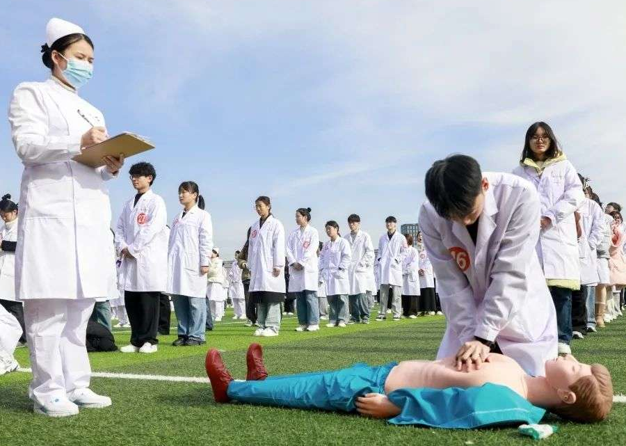 除学生外,豫北医学院还要求所有教职员工,包括环卫人员、安保人员在内,必须熟练掌握应急救护技能。“我们希望全校所有师生无论在校内校外,如果遭遇紧急情况,都能站得出来、拿得出手、救得了命。这才不辜负我们医学院的使命。”李庚说。