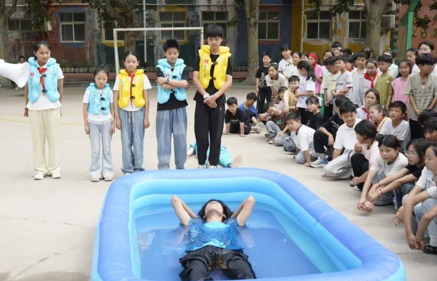 6月23日上午,豫北医学院“模拟池塘 防溺先锋”应急救护社会实践团走进新乡市平原示范区马庄完全小学,搭建“模拟池塘”实训场景,通过沉浸式教学让防溺水教育从“纸上谈兵”走向“实战演练”,为200余名师生送上了一份“暑期安全大礼包”。