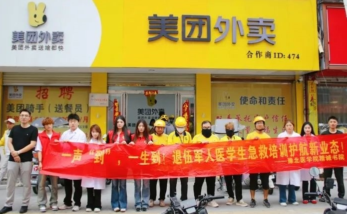 同期,学院退伍军人医学生急救培训实践团在驻马店市上蔡县服务7天,辗转12个场所,往返400多公里,将专业急救技能送进外卖站点、厂房、学校等处,惠及1200余人。