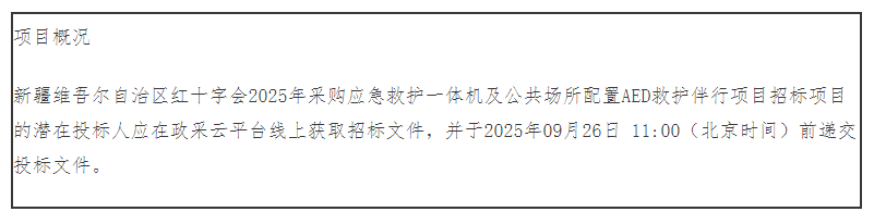 项目名称:新疆维吾尔自治区红十字会2025年采购应急救护一体机及公共场所配置AED救护伴行项目