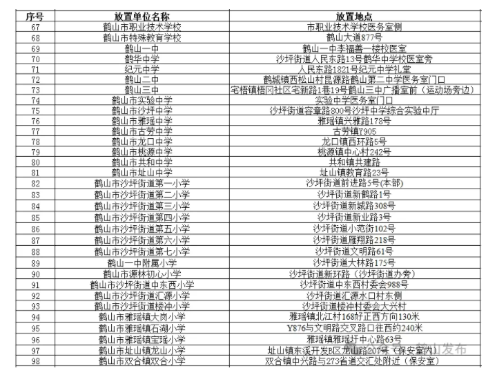鹤山市自动体外除颤器(AED)放置点