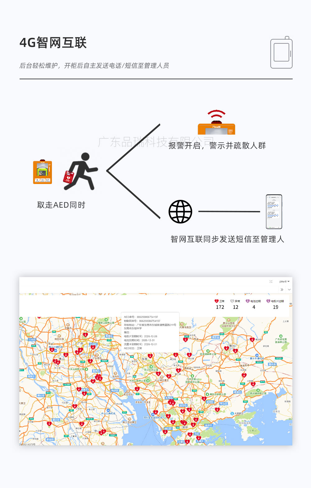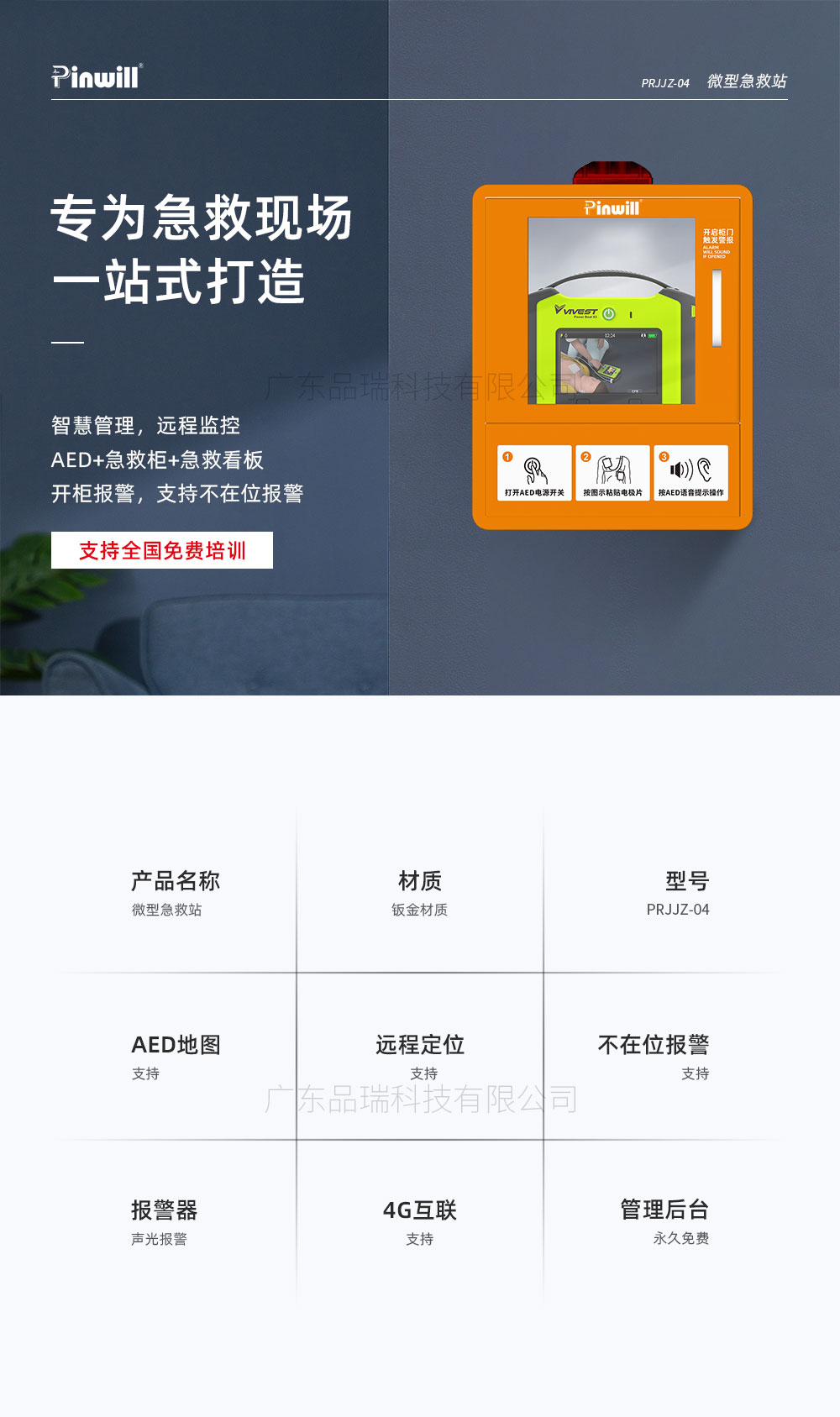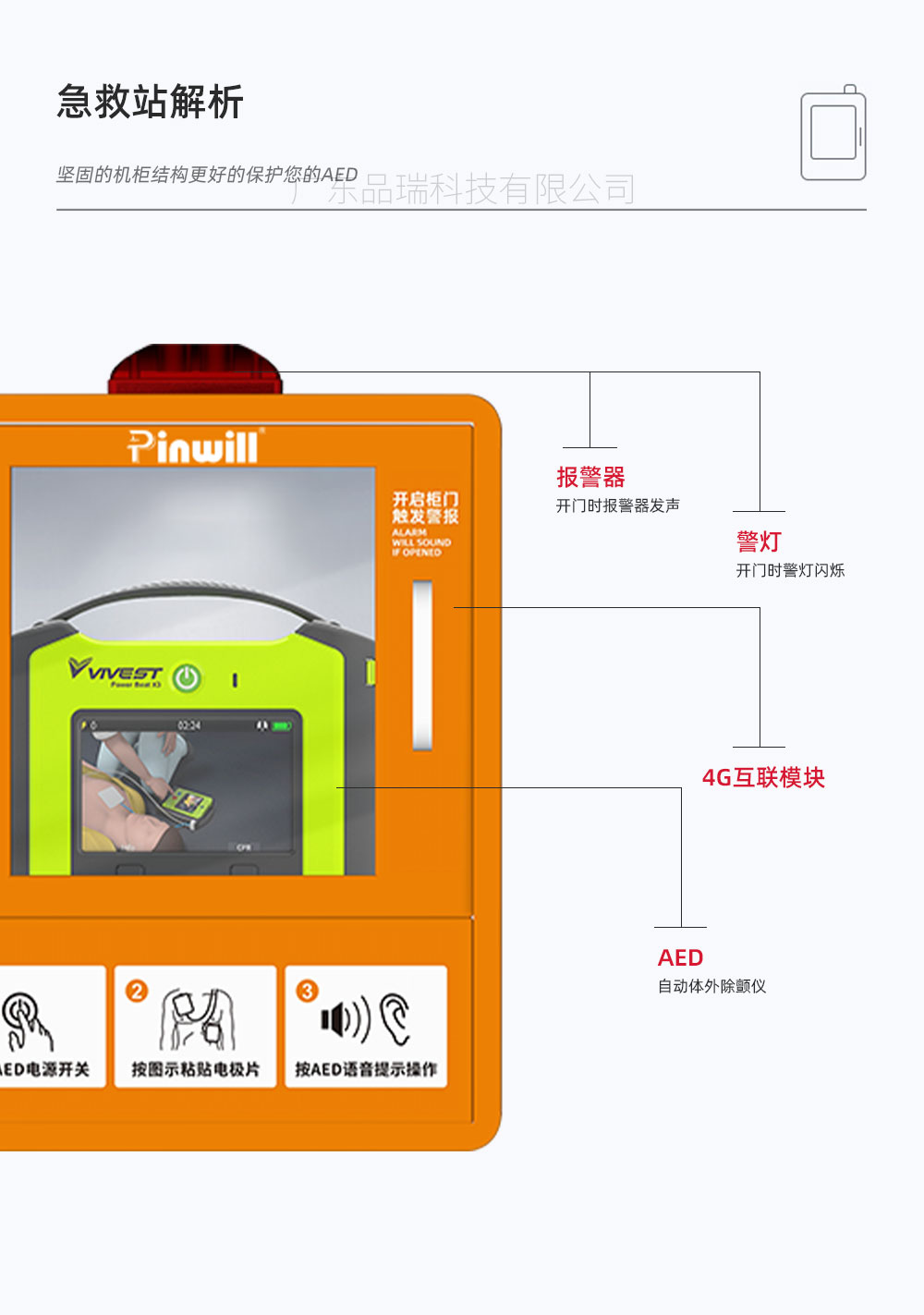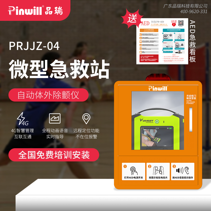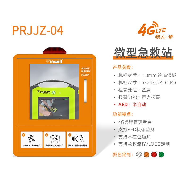 微型急救站 品瑞PRJJZ-04 4G联网 实时传输数据 AED急救站 AED除颤仪,心脏骤停紧急救治。通过网络数据,可实施快速传输,AED急救系统,后台数据管理,监控等功能。