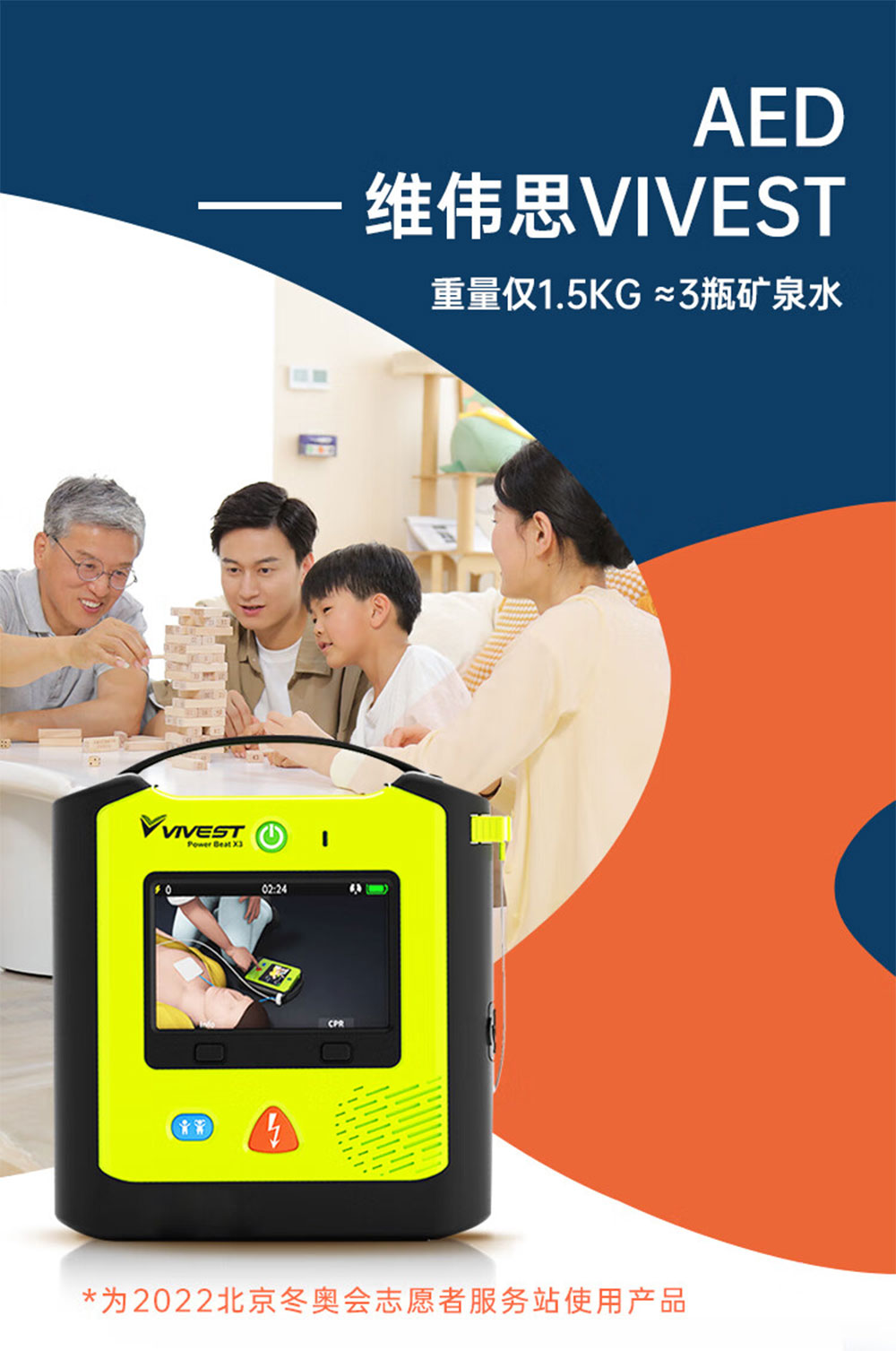 选用维伟思AED PowerBeat X3 轻小,便捷,带视频,急救更直观。