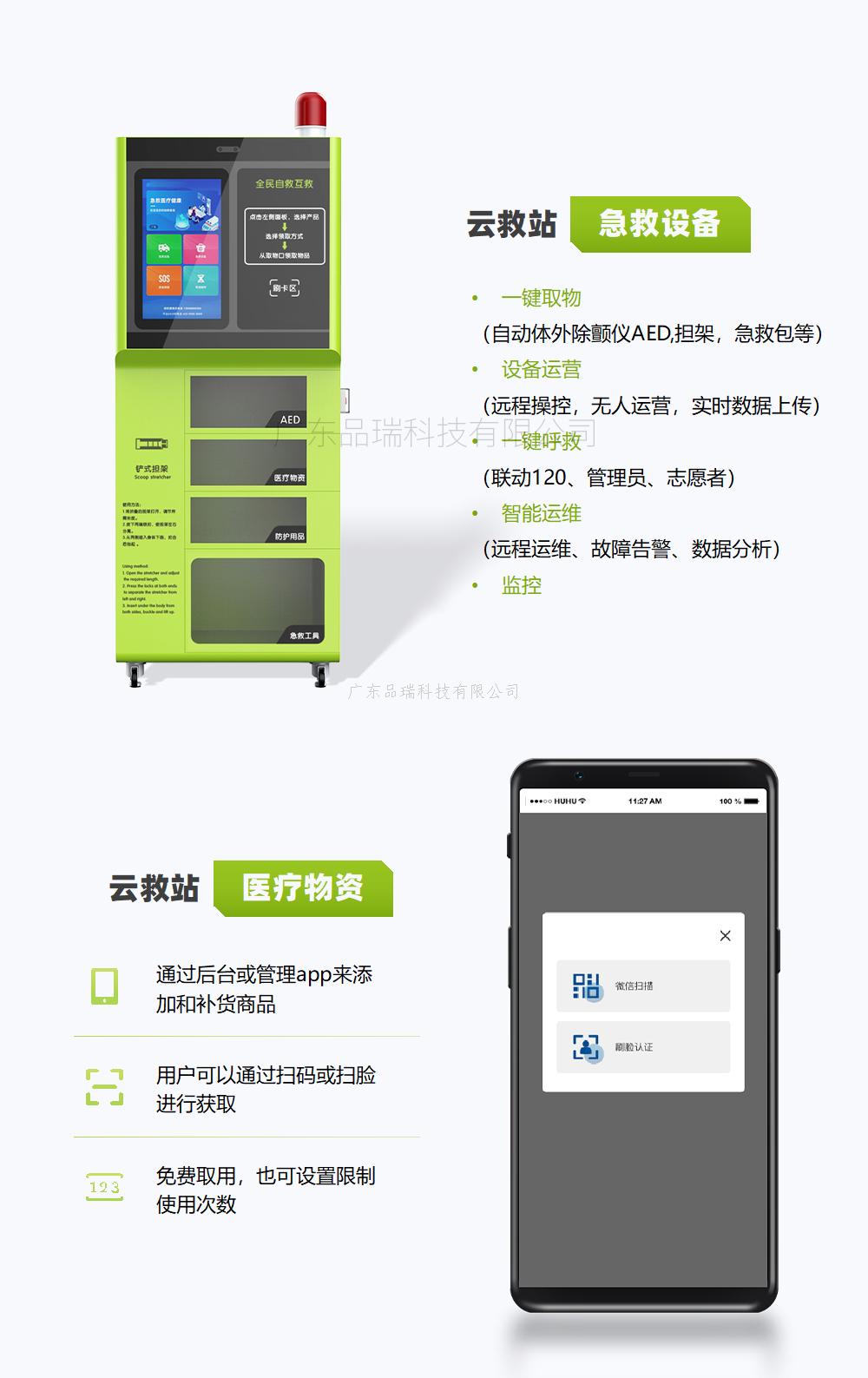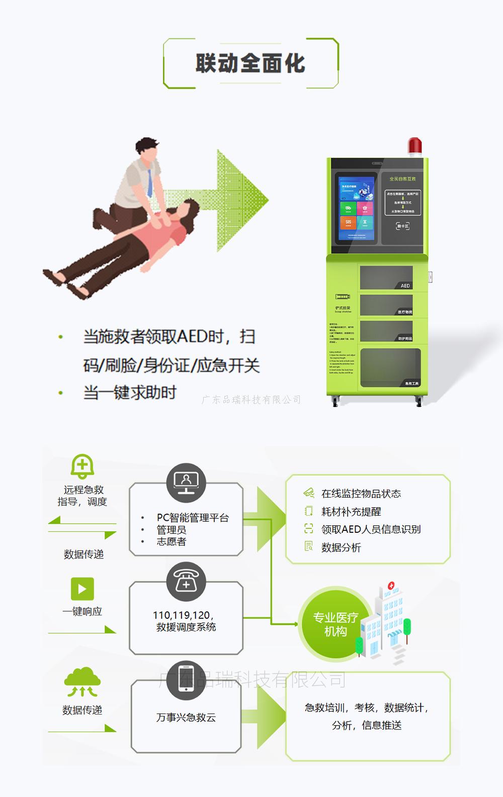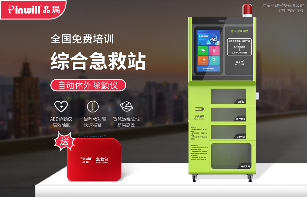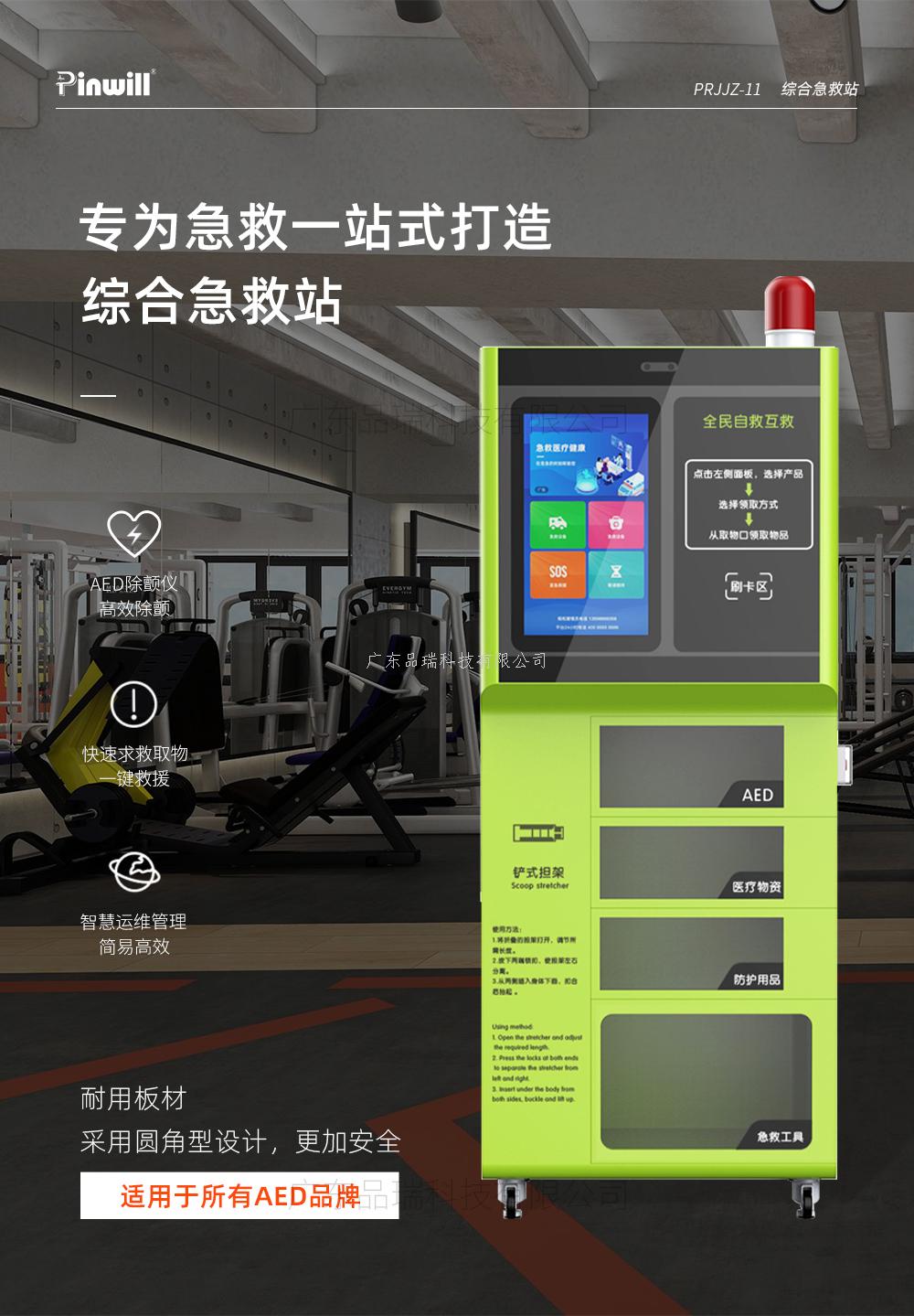 综合急救站 品瑞PRJJZ-11 公共场所一站式急救设备,适用于大型社区,商超,企业,旅游园区等领域,配套AED、医疗物品、防护用品、急救工具,高清屏幕系统操作,智能系统后台管理,扫码取件等,为应急救护而设计。