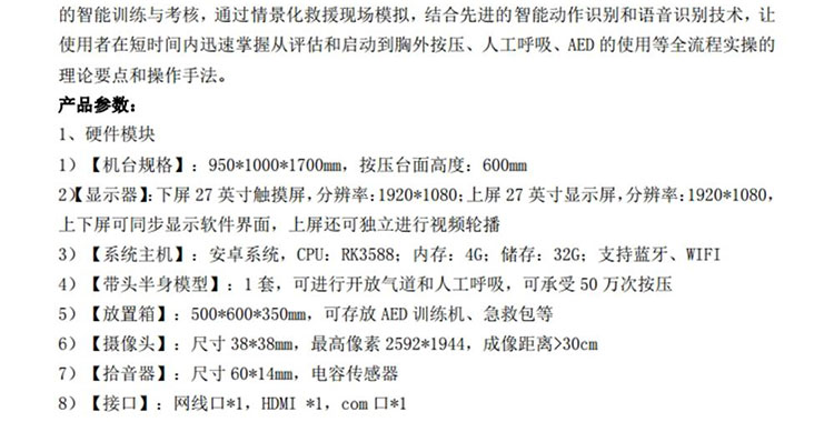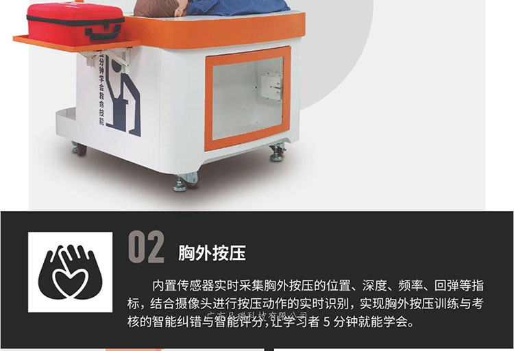 ,品瑞PRJJZ-12 带有应急救护知识科普,急救培训练习,如:心肺复苏,人工呼吸,AED使用等。并可以对练习者进行考核。