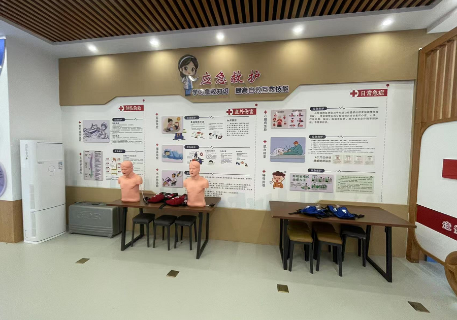 急救知识科普区:通过图文展板、动态视频、互动屏幕等形式,系统讲解心肺复苏、AED除颤仪使用、止血包扎、烫伤处理、异物卡喉急救(海姆立克法)等基础急救知识,同时普及校园常见意外(如运动损伤、踩踏、火灾逃生)的预防与应对要点,内容通俗易懂,适配不同年龄段学生理解。