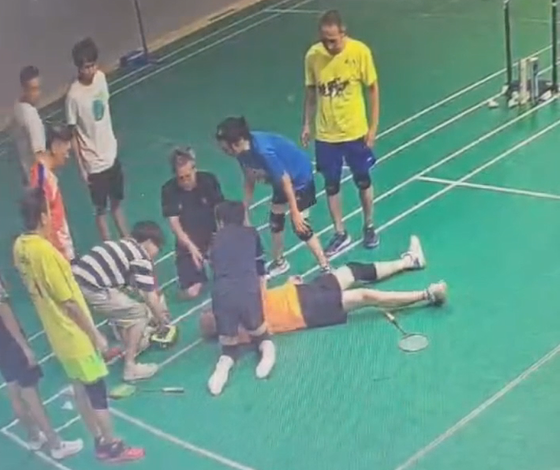 2025年10月17日下午,在广州一家羽毛球馆打球过程中有人突然晕倒疑似发生突发心脏骤停,球友们马上合力营救!