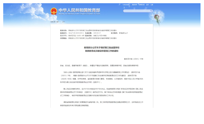 校园急救教育是提升青少年健康素养的关键抓手,更是筑牢校园安全防线的重要支撑。教育部办公厅牵头开展的全国学校急救教育试点工作,始终以提升学生健康素养为核心,以普及急救知识技能为重点,以强化校园应急能力为目标,通过三批试点的梯次推进,逐步构建起 “全学段覆盖、多主体协同、标准化建设” 的育人体系,为全国学校急救教育发展探索出可复制、可推广的实践路径。