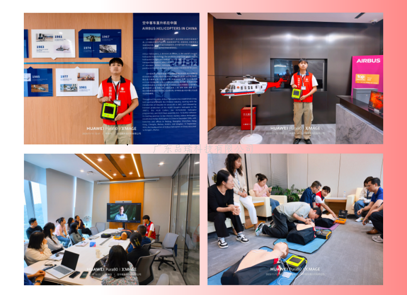 值得注意:本次珠海区空客在中国急救培训是继之前在天津、沈阳,北京地区举办学习后第四场活动,空客在中国配置AED,智能急救站,学习急救技能由广东品瑞科技提供一站式服务,目前空客在中国已开展四场培训和设备布防急救演练。