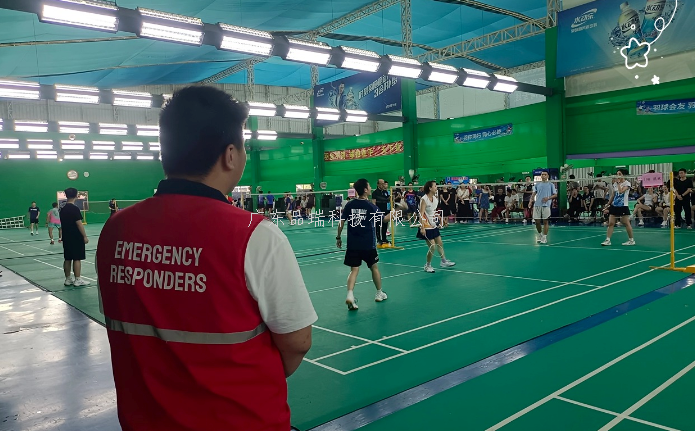 2025年11月18日,“挥拍聚力 羽动勘设” 机关单位,东莞市勘察设计协会羽毛球比赛热烈开赛。来自省内外12家单位的选手同场竞技,广东品瑞科技(应急科普人)团队携AED、急救箱全程值守,为赛事筑牢应急救护防线。