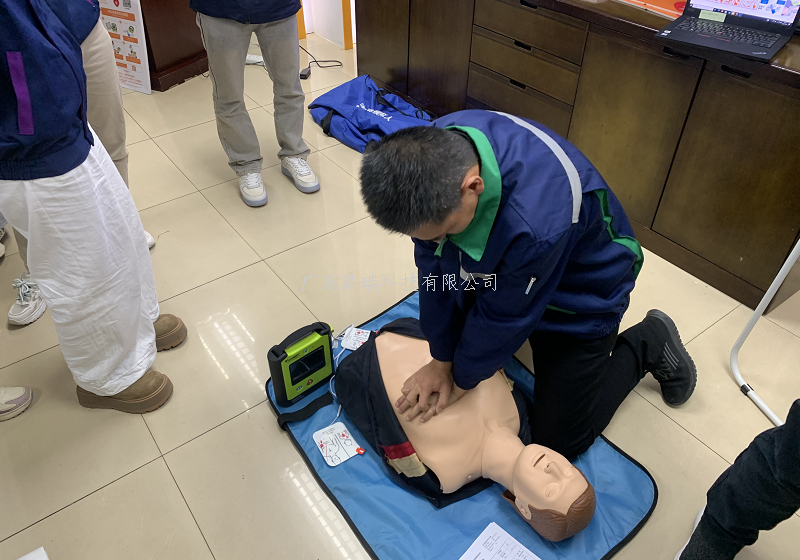 培训围绕核心急救技能展开,导师详细讲解了突发事件下的应急响应流程、心肺复苏(CPR)的操作要点、人工呼吸的正确方法以及AED除颤仪的使用步骤与注意事项。通过理论结合实操的方式,员工们积极动手练习,有效掌握了为生命救援争取“黄金时间”的关键技术。