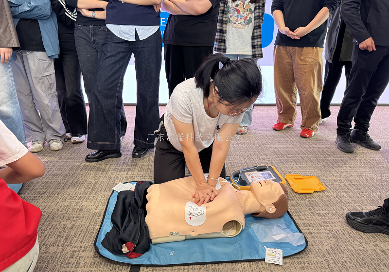 实操演练是本次培训的核心环节,学员们分组进行了心肺复苏(CPR)、自动体外除颤仪(AED)使用、创伤急救等技能的实操训练。在心肺复苏教学中,老师示范了胸外按压的标准位置、频率与深度,以及人工呼吸的正确手法,要求学员严格遵循 “30 次按压 + 2 次呼吸” 的循环流程;在 AED 操作教学中,重点讲解了 “开机 - 贴片 - 分析 - 除颤” 的标准步骤,并强调了操作过程中的安全注意事项,让学员掌握应急处理方法。此外,培训还设置了模拟急救场景,让学员在仿真情境中完成从病情判断到急救实施的全流程演练,提升应急处置的综合能力。