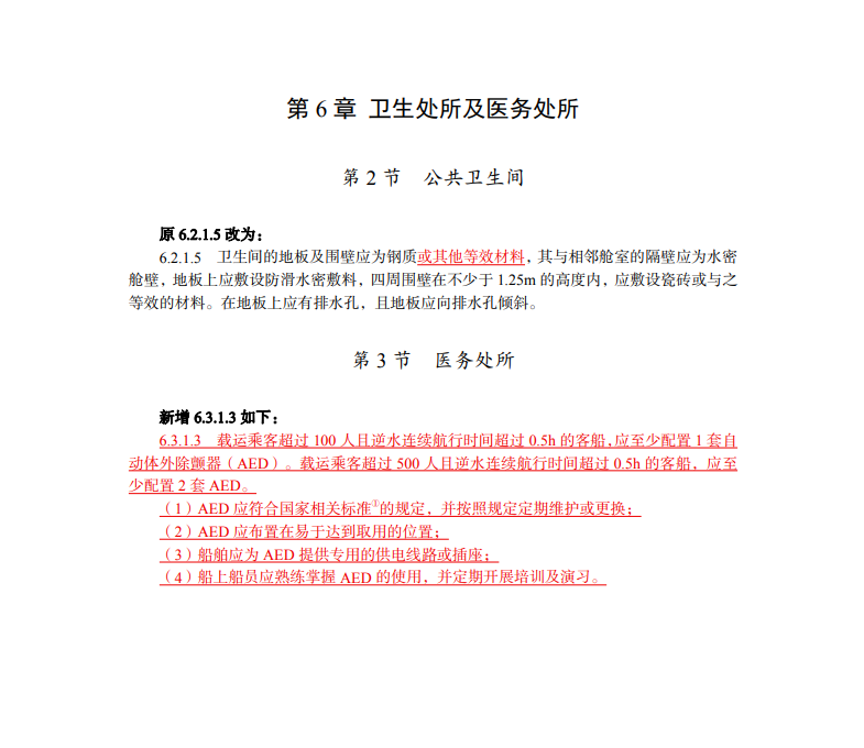 作为水上移动的公共场所,船舶环境封闭、船员长期处于高压工作状态,心血管疾病风险较高,而水上救援的响应时间往往以小时计,此时AED的及时使用,能直接大幅提升患者生存率。新规不仅给出了清晰的量化标准:载运乘客超 100人且逆水连续航行超0.5小时的客船至少配1套AED,载客超500人的同类船舶则需配2套;更对设备质量、维护更换、放置位置、供电保障及船员使用技能培训作出了细致规范,确保AED不只是 “摆设”,更能在紧急时刻真正发挥作用。