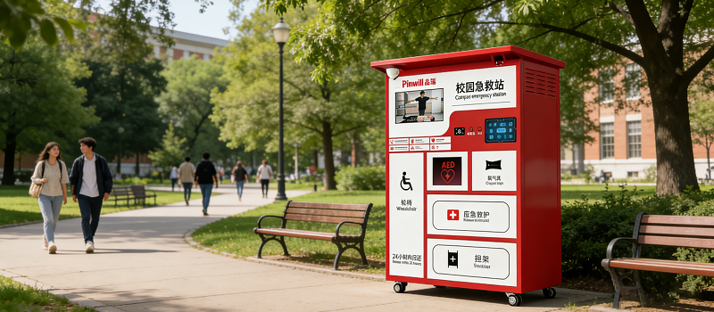 品瑞科技全新款校园急救站可灵活部署在教学楼、操场等区域可放置室内或户外,具备防雨水渗透,助推校园4分钟急救圈升级。还能联动校园安防和广播系统,自动调取监控、发布救援指令,提升应急处置效率。作为2026年校园安全建设重要载体,新型校园急救站以数字化赋能校园安全,为师生生命健康保驾护航。